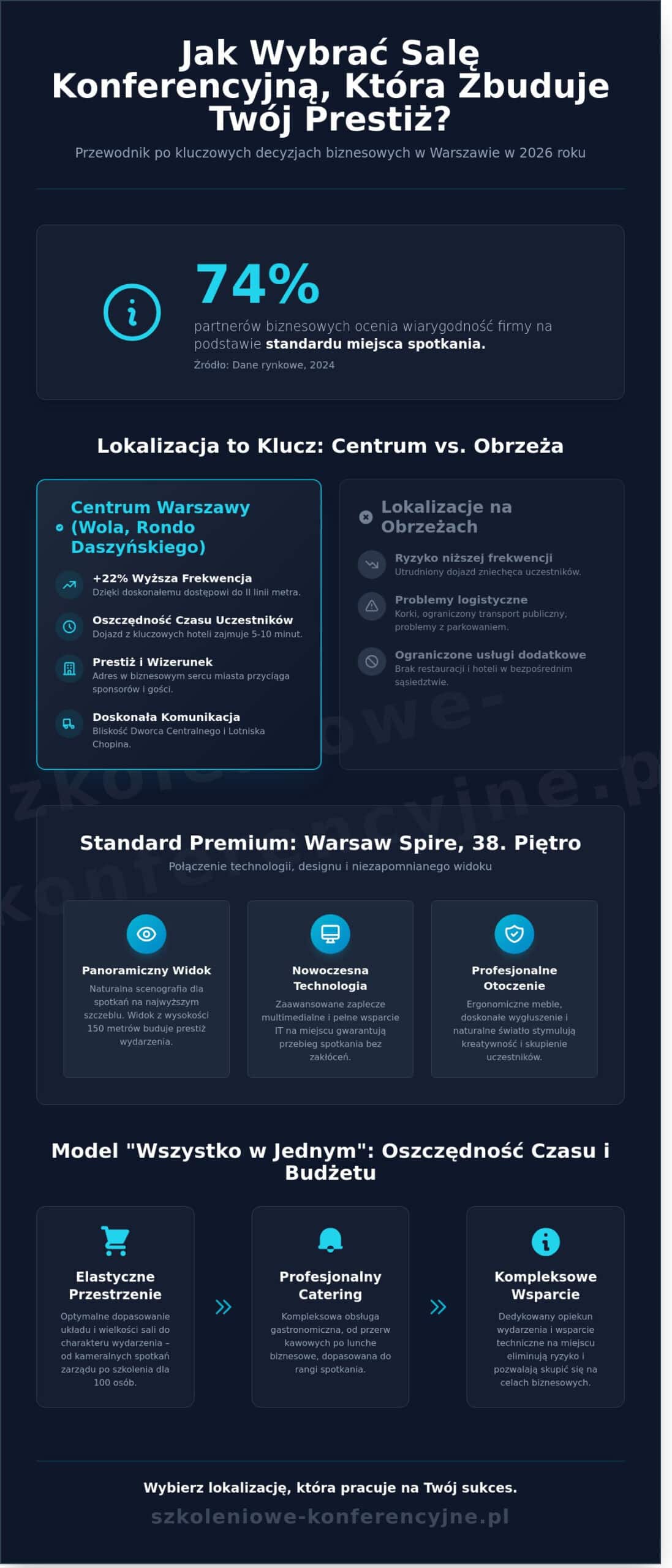 - Poznasz kryteria wyboru idealnej przestrzeni, sprawdzając, jak nowoczesna sala konferencyjna na wynajem Warszawa centrum na 38. piętrze łączy panoramę miasta z zaawansowaną technologią.